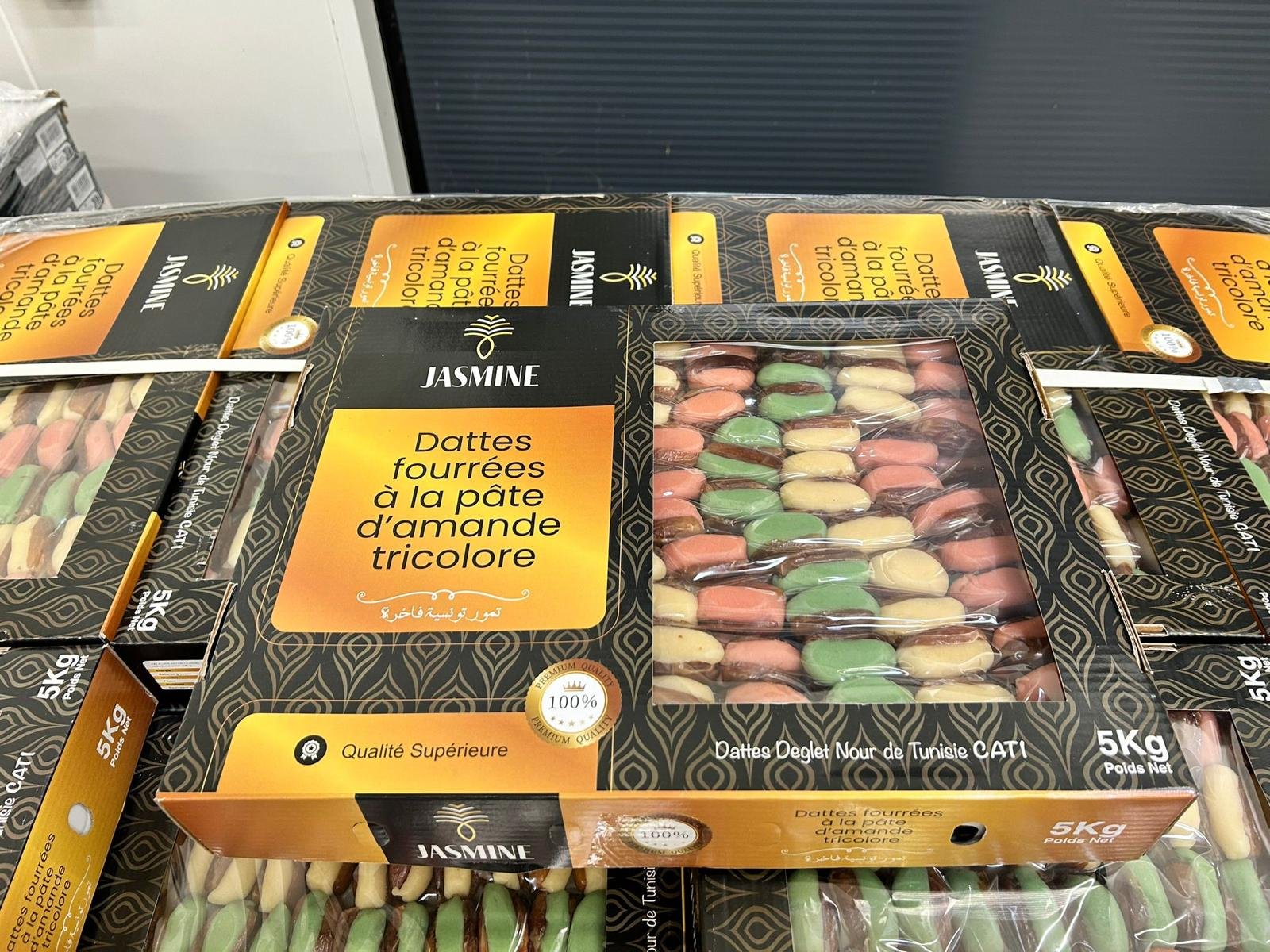 - Dattes fourrées à la pâte d’amande tricolore – 5 kg